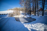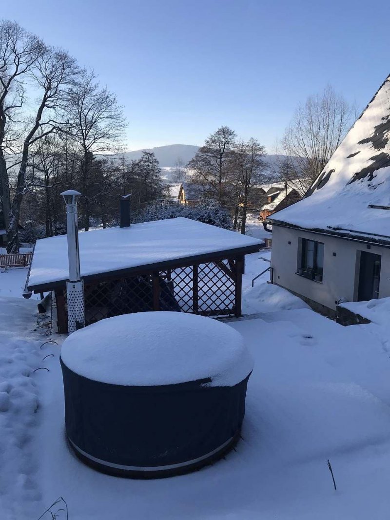 Zrekonstruovaná chalupa s vlastním wellness - finská sauna, venkovní bazén vyhřívaný na 28 stupňů, koupací káď. Cena již včetně energií za pronájem celé chalupy pro 11 osob.