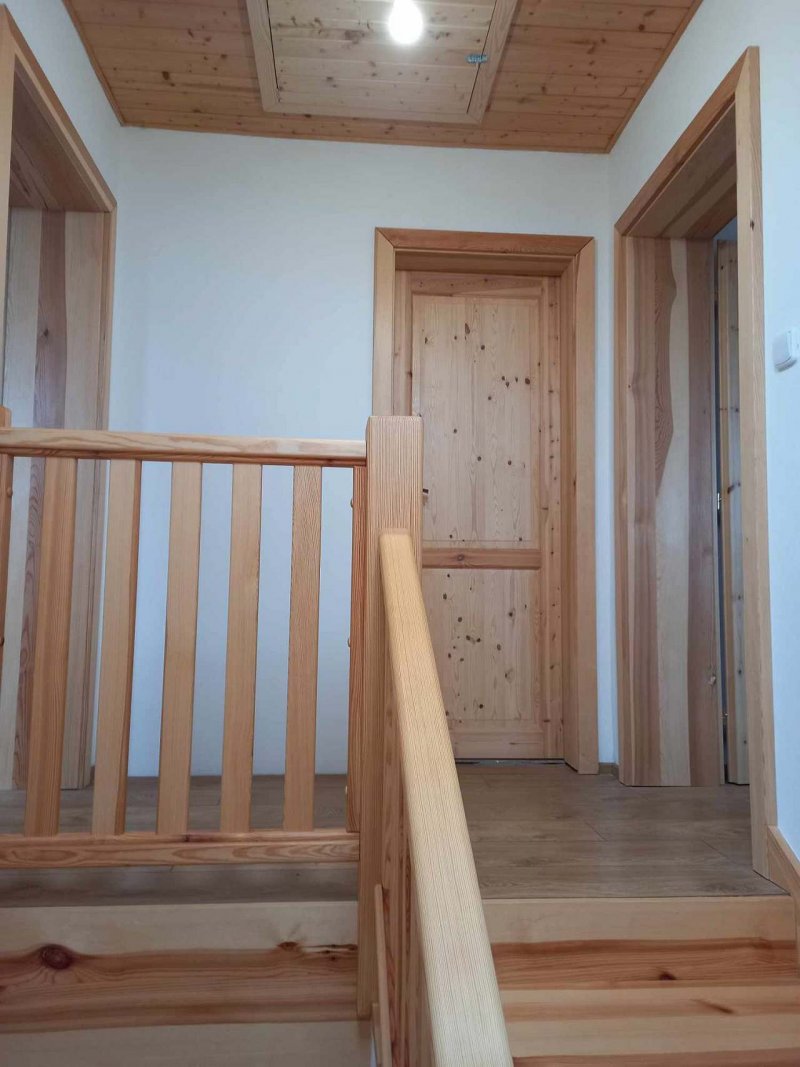 Chalupa je dvoupodlažní s roubením na štítech. V přízemí za vstupem je zádveří propojené s chodbou, ze které je přístupná koupelna, kuchyň a obývací pokoj s krbem. Z pokoje přístupná terasa s nádherným výhledem, kde se dá posedět nebo grilovat. Po schodech se dostanete do podkroví, kde jsou dvě prostorné ložnice, naproti schodišti samostatné sociální zařízení.