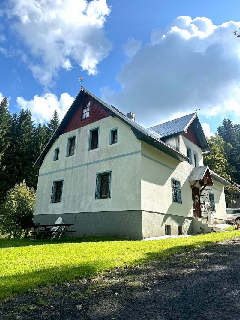 Chalupa v obci Boží Dar: 3 ložnice, celkem pro 1 až 7 osob. Orientační cena (chalupa za noc): léto 7.000kč, zima 8.000kč.