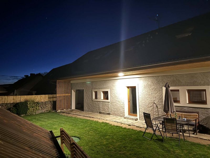 Chalupa Kozárovice, čerstvě zrekonstruovaná v roce 2025,je ideální volbou pro vaši dovolenou, ať už hledáte aktivní výlety, pohodové večery na uzavřeném dvoře, včetně odpočinku ve vířivce, nebo klidné ráno s kávou. Chalupa Kozárovice se nachází 8km od zámku Orlík, 22km od města Příbram a 65km od hlavního města Praha. Stylové ubytování pro náročné i pohodáře. Nově zrekonstruovaná chalupa nabízí komfortní ubytování až pro 10 osob ve dvou prostorných ložnicích, které se nacházejí v patře objektu. Díky chytrému uspořádání a kvalitnímu vybavení se u nás budete cítit jako doma. Pro koho je chalupa ideální? Rodiny s dětmi, Páry hledající klid, Malé skupiny přátel, Milovníky přírody, cyklistiky, turistiky či rybaření. Chalupa není vhodná pro hlučné oslavy a večírky – nachází se v klidné obytné zóně a vztahy se sousedy jsou pro nás důležité. Noční klid je nutné dodržovat. Celý objekt je přísně nekuřácký s požadavkem na přezůvky v objektu.