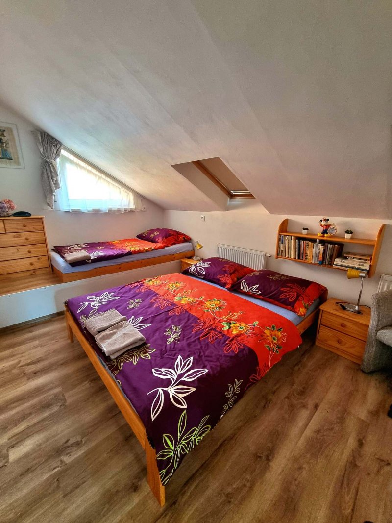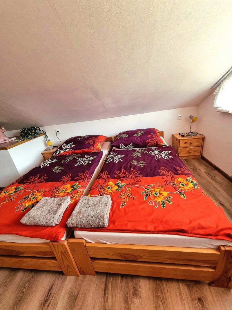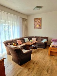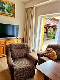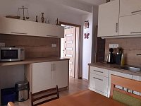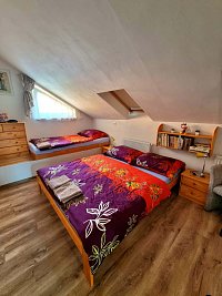 nově zrekonstruovaný velký apartmán se třemi samostatnými pokoji, s vlastní sprchou a WC, vybavenou kuchyní a jídelním stolem se 4 židlemi, v části rodinného domu v centru obce Hutisko - Solanec v Beskydech, pro celkově 8 osob, se samostatným vstupem, s krytým venkovním posezením, s parkováním před objektem. Malý apartmán se dvěma pokoji, kuchyní s jídelním stolem pro 4 osoby, koupelnou a WC se samostatným vstupem, pro celkově 5 osob, s parkováním před objektem. V dosahu 150m autobusové stanoviště, dále 150m pošta, 150m s možnosti nakupování, zdravotní středisko s lékárnou, restaurace, možnost procházek po okolí i lesem, restaurace ve valašském stylu U tetky Fojtky , 700 m areál s koupalištěm, dětskými hřišti, tenisovými kurty, hřiště na volejbal a basketbal, cyklostezky, běžecké trasy, v zimě v okolí 10 km možnost sjezdového lyžování a trasy pro běžky. 5 km Valašské muzeum v přírodě v Rožnově pod Radhoště, 10 km oblíbená turistická oblast Pustevny a Radhošt, 5 km vrch Soláň s informačním a kulturním centrem Zvonice Soláň .