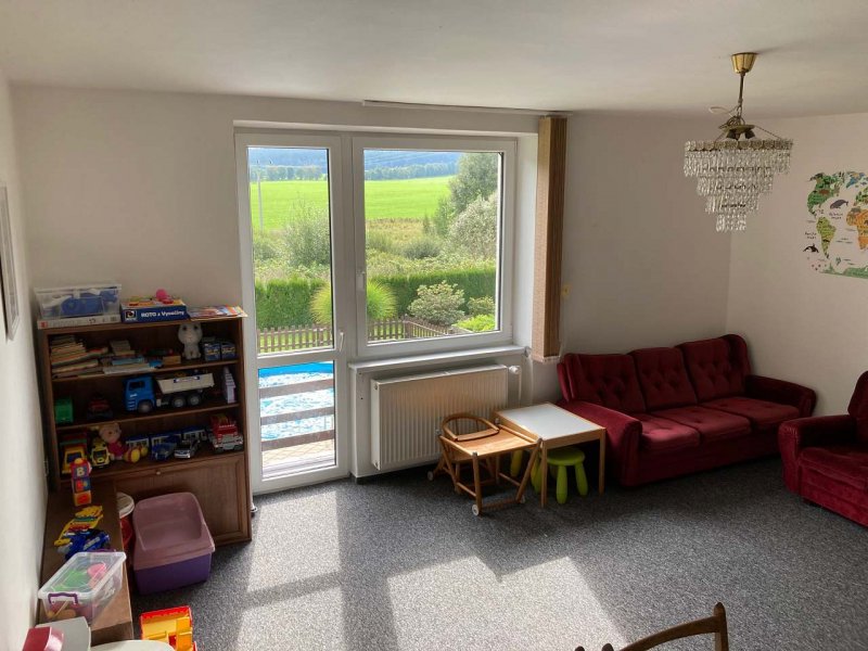 Velká oplocená zahrada, oplocený bazén, vířivka, zastřešená pergola s krbem a udírnou. Pro děti houpačky, trampolína (sezóně), pískoviště (sezóně), odrážedla, v chalupě se nachází dětský koutek, bohatá knihovna, pingpongový stůl, šipky, aj.