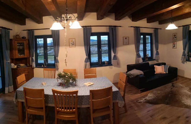 Chalupa v obci Horní Stropnice: 2 ložnice, celkem pro 2 až 8 osob. Orientační cena (chalupa za týden): léto 15.000kč, zima 13.000kč.
