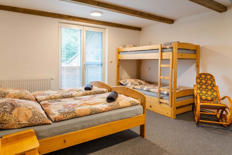 Chata v obci Červená Voda: 6 ložnic, celkem pro 2 až 18 osob. Orientační cena (chata za týden): celoročně 66.500kč.