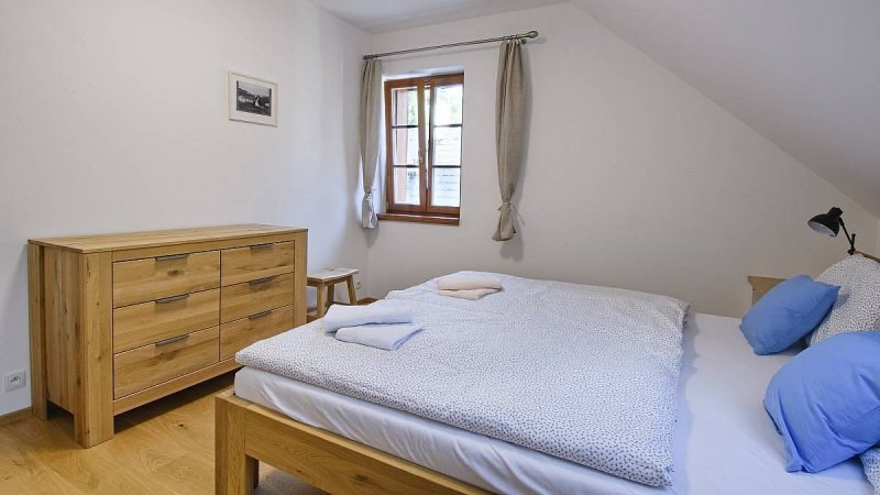 Chalupa v obci Libínské Sedlo: 2 ložnice, celkem pro 2 až 6 osob. Orientační cena (chalupa za noc): léto 5.990kč, zima 5.190kč.