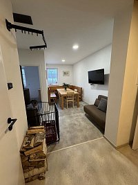 Apartmán v obci Příchovice: 2 ložnice, celkem pro 1 až 8 osob. Orientační cena (za apartmán za noc): celoročně 2.000kč.