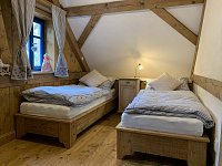 Chalupa v obci České Milovy: 3 ložnice, celkem pro 2 až 8 osob. Orientační cena (chalupa za týden): léto 16.000kč, zima 15.000kč.