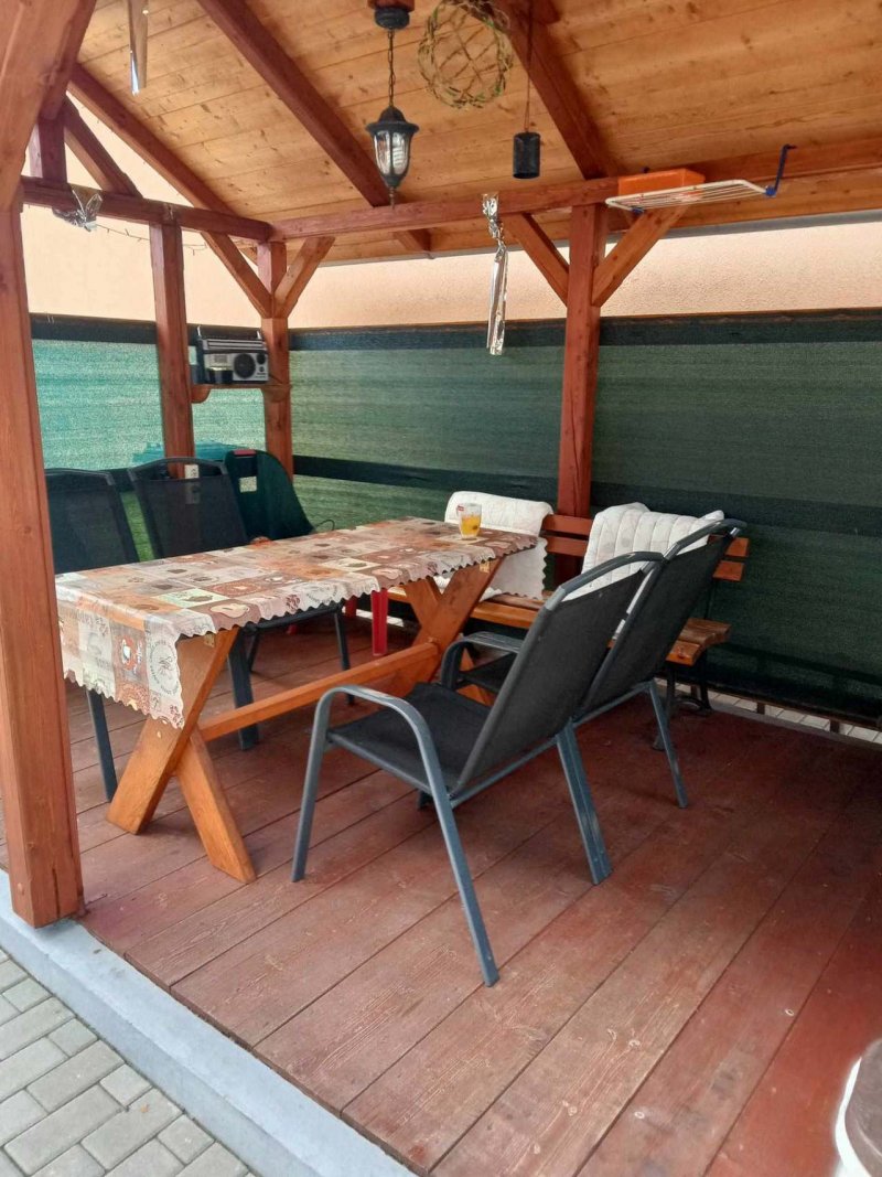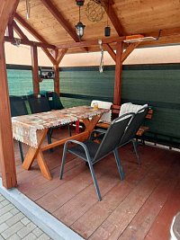Exteriér chalupy ponúka príjemné prostredie s altánkom, kde si môžete užívať chvíle pohody, vonkajším posedením a grilom, ideálnym na letné večery s rodinou alebo priateľmi. Pre vaše vozidlá je k dispozícii parkovanie priamo pri objekte pre 4 autá.