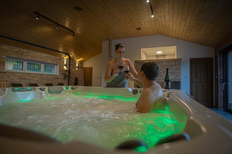 Součástí je také útulná společenská místnost s barem a krbem pro večery plné povídání a sdílení zážitků s rodinou nebo přáteli. Pokud hledáte opravdový klid a odpočinek, máme pro vás připravenou soukromou wellness zónu s vířivkou a saunou. Chalupa Sonnenhaus je perfektním místem pro ty, kteří hledají útěk od ruchu města a touží po harmonii s přírodou.