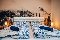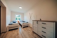 Chalupa TADY a TEĎ umístěná v klidné části obce Lipová - lázně disponuje celkem 15 lůžky v celkem 6 pokojích. Zázemí chalupy tvoří prostorná společenská místnost, dvě plně vybavené kuchyně, tří koupelny a velký dětský koutek. Na zahradě naleznete posezení s grilem, dětské hřiště, pískoviště a odpočinkovou zónu v podobě koupacího sudu a panoramatické sauny.