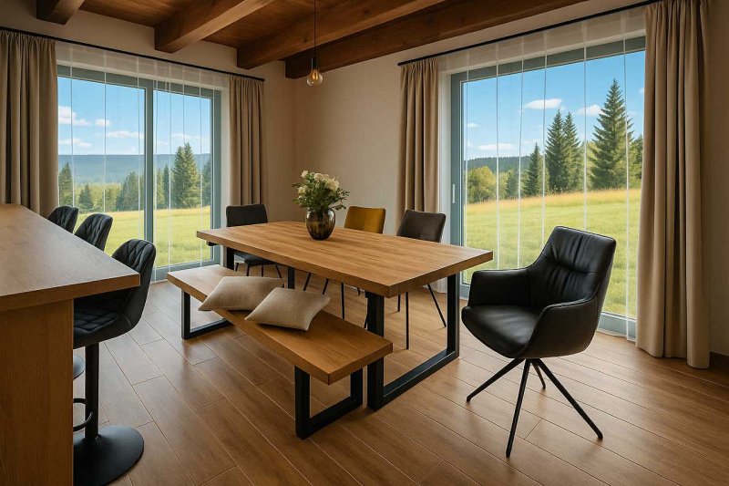 V nádherné krajině Novohradských hor Vám představujeme zbrusu novou, vkusně zařízenou chalupu Theodor, která se nachází pouhých 250metrů od oblíbené Chalupy Julia ve Starých Hutích u Horní Stropnice, kterou v této lokalitě úspěšně provozujeme již čtyři sezony. Theodor tak navazuje na ověřený koncept pohodlného a stylového ubytování - a přidává k tomu zcela nový šmrnc. Tento moderní a vkusně zařízený objekt s kapacitou až 11 osob (ideálně 9 dospělých a 2 děti na přistýlkách) je ideální pro rodinné pobyty nebo skupiny přátel či kolegů, kteří hledají komfort, soukromí a kouzlo Novohradských hor.