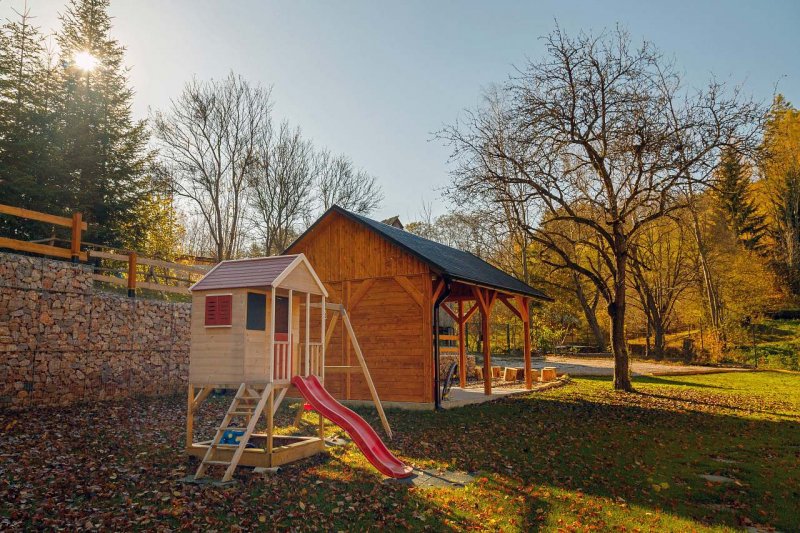 K chalupe prislúcha upravený spoločný dvor, kde si oddýchnete, posedíte pri šálke bylinkového čaju a uvaríte fajnový kotlíkový guláš. Detičky sa zahrajú v detskom domčeku so šmýkačkou a hojdačkou, vnútri si nájdu pekné hračky. Oba apartmány sú pokryté WiFi internetovým signálom. Pobyt s domácim zvieraťom je povolený.