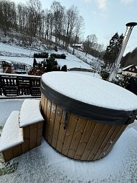!!! Novinka!!! Od začátku října je nově k dispozici koupací sud s hydromasážním a aeromasážním systémem!!! Chalupa je situována na rozlehlém pozemku v klidném údolí 10 km od Adršpašsko - teplických skal v obci Skalka u České Metuje. Ve vzdálenosti 3 km se nachází menší skalní město se zámečkem Bischofstein s výhledem do malebného okolí. Pobyt ocení zejména milovníci přírody, cykloturistiky a turistiky. K dispozici je velká venkovní terasa vybavená bazénem a krytou pergolou ideální pro večerní posezení u krbu.. Na terase je také umístěna infrasauna pro 3 osoby a koupací sud s hydromasážním a aeromasážním systémem. K dalšímu vybavení chalupy patří stůl na stolní tenis, elektronické šipky a malé volejbalové hřiště. Ještě jedno venkovní posezení s trampolínou, houpačkou a dětskou skluzavkou je umístěno u potoka před chalupou.. Samozřejmostí je možnost úschovy jízdních kol v uzamykatelném prostoru.