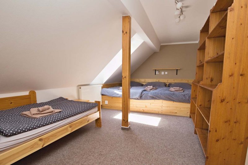 Apartmán v obci Nová Bystřice: 4 ložnice, celkem pro 2 až 9 osob. Orientační cena (za apartmán za týden): celoročně 12.500kč.