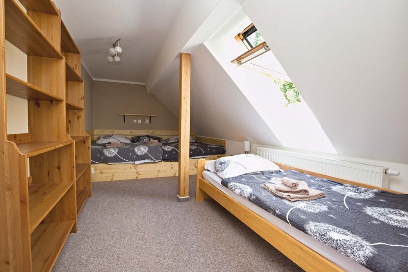 Srub v obci Artolec: 4 ložnice, celkem pro 1 až 12 osob. Orientační cena (srub za týden): celoročně 22.000kč.