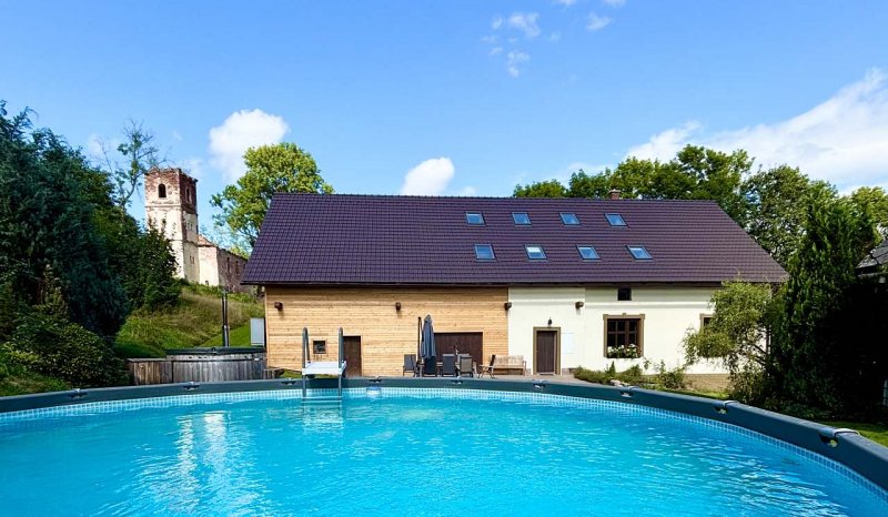 Chalupa v obci Rudník: 4 ložnice, max. 18 osob. Orientační cena (chalupa za týden): léto 39.000kč, zima 42.000kč.