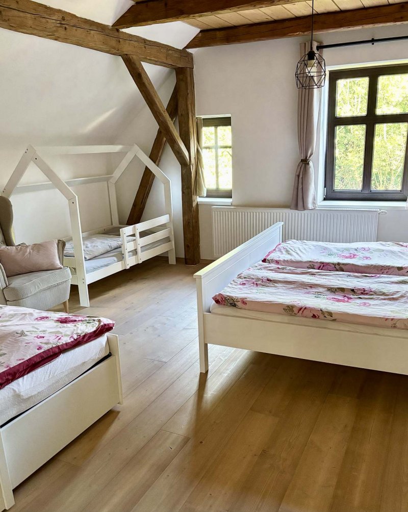 Apartmán v obci Bolkov: 5 ložnic, max. 10 osob. Orientační cena (za apartmán za noc): léto 2.000kč, zima 2.200kč.