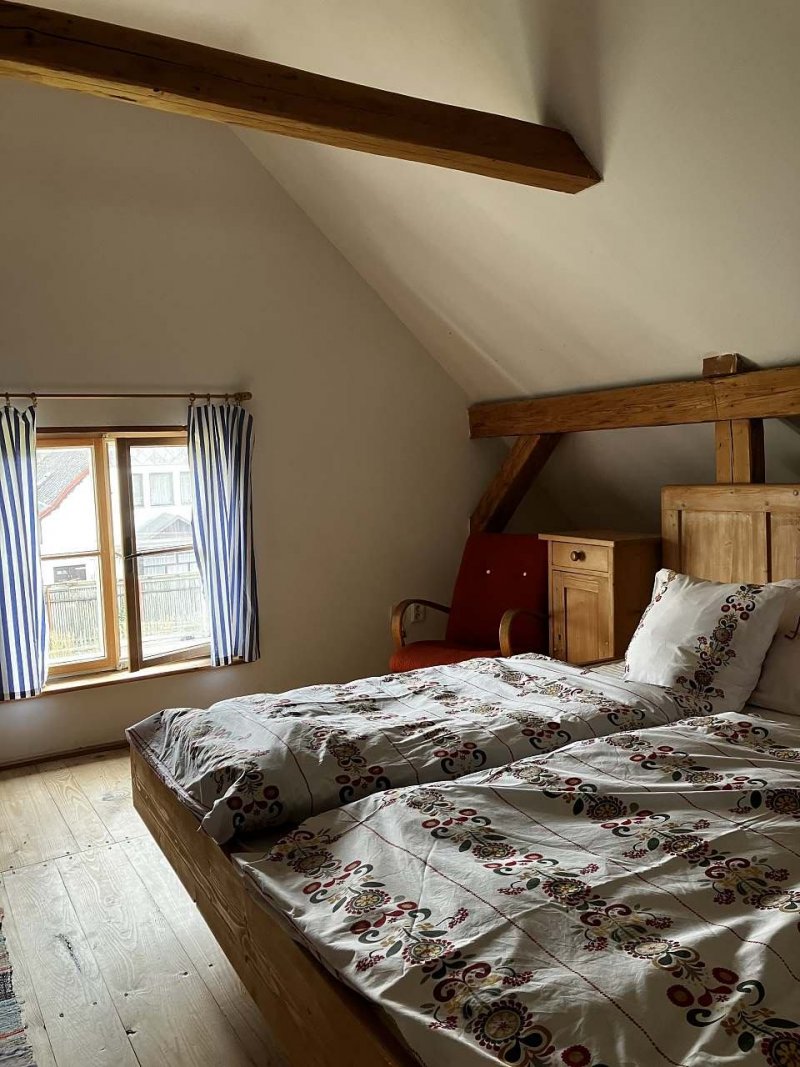 Chalupa v obci Vříšť: 3 ložnice, celkem pro 2 až 9 osob. Orientační cena (chalupa za týden): léto 23.000kč, zima 20.000kč.