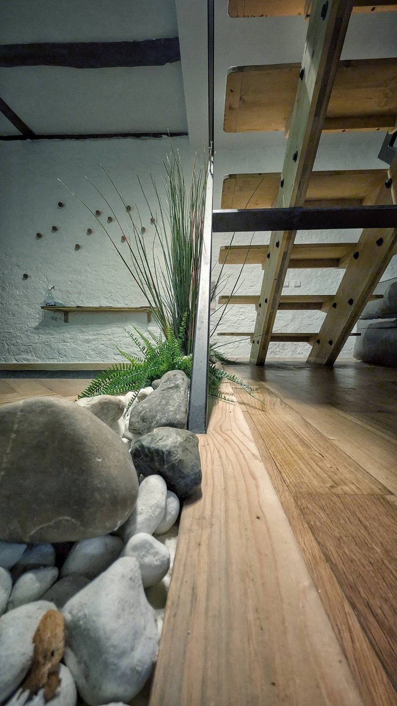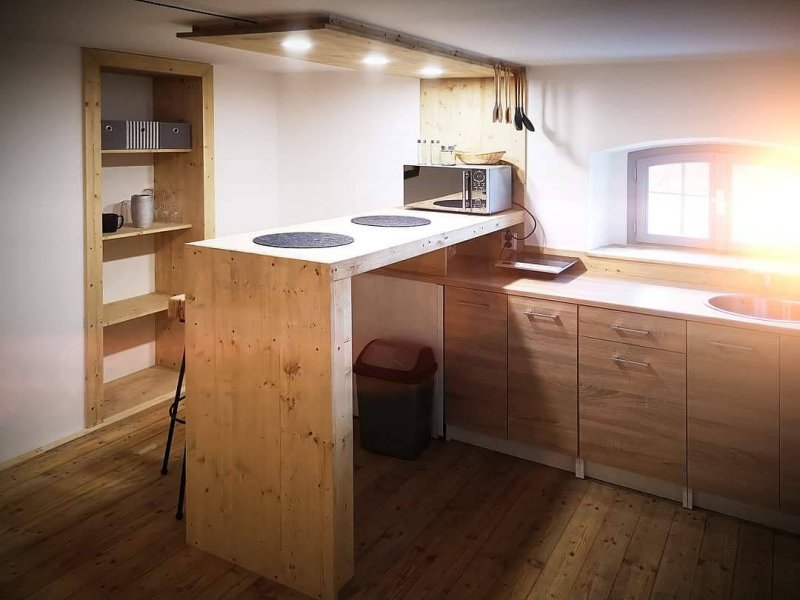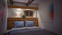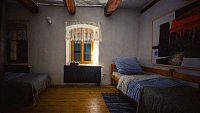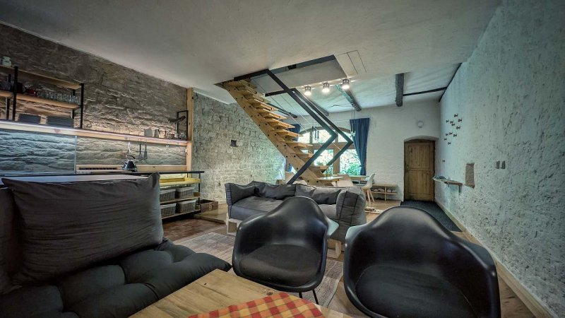 300 let stará nově zrekonstruovaná chalupa je rozdělena na dvě části, prostornou kamennou chalupu se třemi pokoji, halou, kuchyní a obývacím pokojem, samostatný apartmán je možné propojit s ostatními místnostmi terasou.
