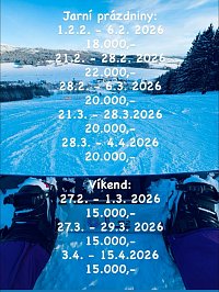 Cena: léto 30.000kč, zima 27.000kč / chalupa za týden