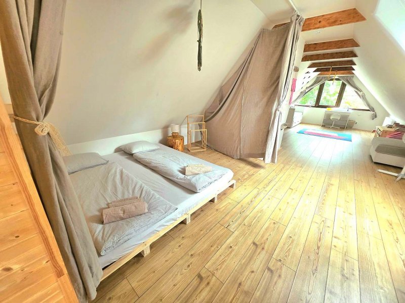 Objevte kouzlo venkova v naší útulné chalupě u Jezírka, která se nachází na okraji malebné vesničky Střihov uprostřed rozlehlých polí, luk a kousek od lesů. Chalupa prošla citlivou rekonstrukcí a nabízí ideální místo pro rodiny s dětmi, milovníky přírody, cyklisty i všechny, kteří hledají klid a soukromí. Od začátku července budeme instalovat na zahradu zahradní bazének (3,6m průměr a 90cm hloubka + solární ohřev vody). Chalupa je ideální pro rodiny s dětmi, páry i skupiny přátel, kteří hledají místo pro odpočinek v klidné obci obklopené přírodou, ale zároveň v dosahu města. Ideální skupina je maximálně 6 osob v rozložení 4 dospělý a 2 děti. Těšíme se na vaši návštěvu, děti si to u nás totiž rozhodně užijí!