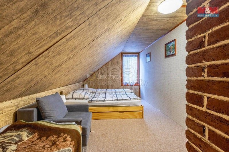Chalupa v obci Doksy - Břehyně: 5 ložnic, celkem pro 1 až 17 osob. Orientační cena (chalupa za týden): léto 70.000kč, zima 47.000kč.