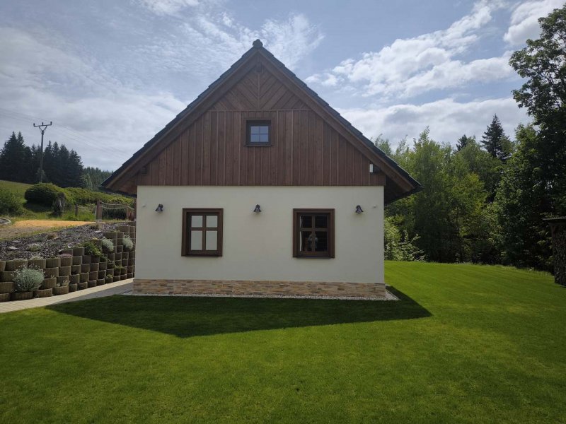 Nabízíme k pronájmu nově postavenou chalupu (dvojdomek se samostatnými vchody). Kapacita jednoho domku je 8 osob, a po dohodě je možné přidat až 3 přistýlková lůžka. Nachází se v krásném prostředí Orlických hor, které vybízí jak k aktivnímu, tak i pasivnímu odpočinku. Je umístěna téměř v centru obce Říčky v Orlických horách, která leží na západním výběžku Orlických hor. Zima v Říčkách nabízí výborné podmínky pro běžecké i sjezdové lyžování. Přímo v obci se nachází moderní lyžařský areál Ski centrum Říčky se šesti sedačkovou lanovkou, snowparkem, půjčovnou lyží, servisem, lyžařskou školou, a samozřejmě restaurací a několika kiosky. Sjezdovka se od chalupy nachází 3,3 km a pravidelně k ní ze spodního parkoviště jezdí skibusy. Pro milovníky běžeckého lyžování jsou v okolí Říček desítky rolbou upravovaných běžeckých tratí s různým stupněm náročnosti.
