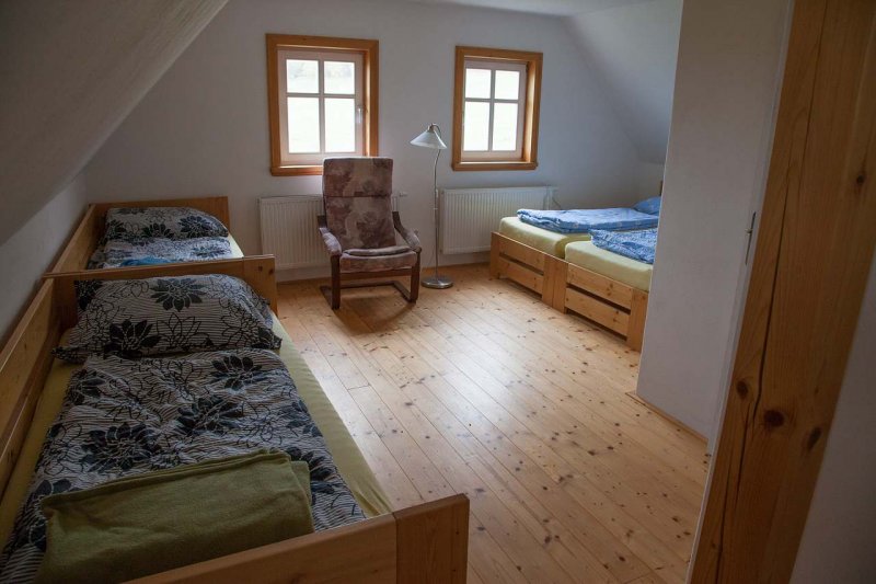 Chalupa v obci Horní Brusnice: 13 ložnic, max. 28 osob. Orientační cena (za apartmán za týden): léto 9.000kč, zima 10.000kč.