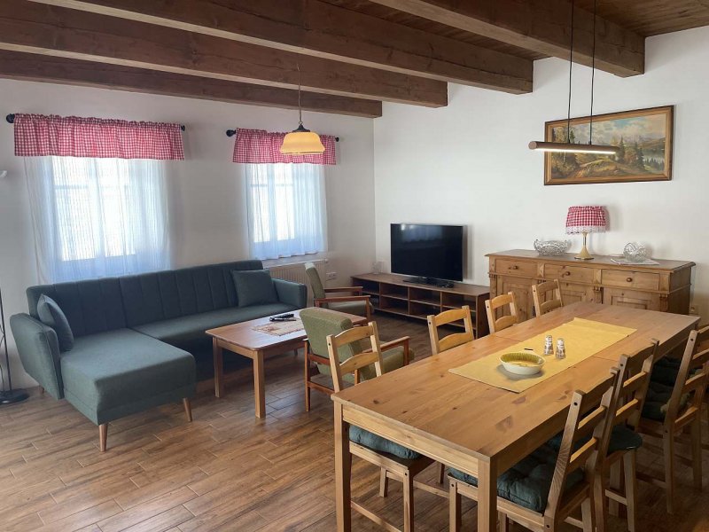 Apartmán v obci Libunec: 2 ložnice, celkem pro 1 až 6 osob. Orientační cena (apartmán za týden): léto 21.700kč, zima 19.600kč.