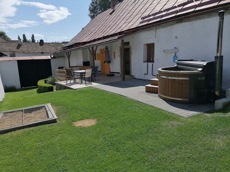 Zrekonstruovaná chalupa s uzavřeným dvorem, společenskou místností, terasou, horkým sudem, bazénem, přilehlou stodolou a velkou udržovanou zahradou nabízí absolutní soukromí a je ideálním místem pro sport, aktivní odpočinek, ale i lenošení a relaxaci.