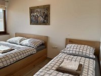 Apartmán v obci Novosedly: 3 ložnice, celkem pro 2 až 10 osob. Orientační cena (za osobu za noc): léto 750kč, zima 650kč.