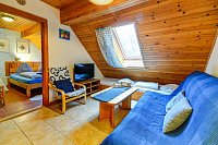Apartmán v obci Svébohy: 3 ložnice, celkem pro 2 až 16 osob. Orientační cena (za apartmán za noc): celoročně 2.450kč.