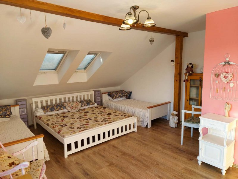 Velice příjemné podlahové vytápění, doplněné krbovými kamny, zajistí komfort a příjemné okamžiky i za zimního období. Pronájem objektu je až pro 14 osob včetně dvou přistýlek. Domácí mazlíček pouze po domluvě s majitelem. Každý z Vás si zde určitě najde kousek vytoužené pohody i aktivního odpočinku.