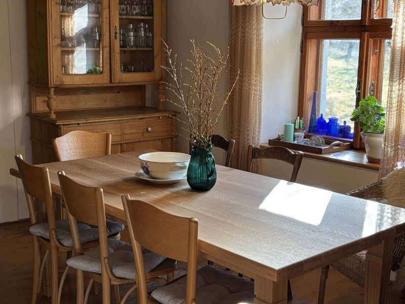 Krásná v původním duchu zrekonstruovaná chalupa na konci vsi s uzavřeným dvorem a velkou zahradou. Vhodná pro lidi hledající klidnou mysl, čistou přírodu a naprosté soukromí.
