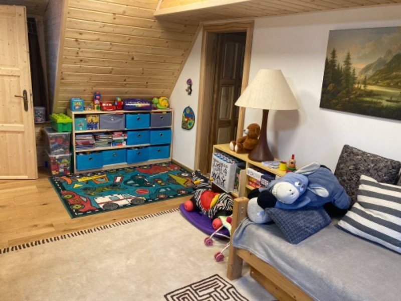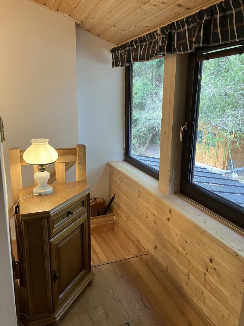 Objekt má stylovou hlavní místnost vybavenou krbovými kamny s pecí na ležení. Dále plně vybavenou kuchyň, TV, Wifi, Dále je k dispozici finská sauna pro 3 osoby, venkovní vyhřívaná vířivá vana pro 5 osob. Možnost ubytování ve třech pokojích z nich se jeden nachází v přízemí.