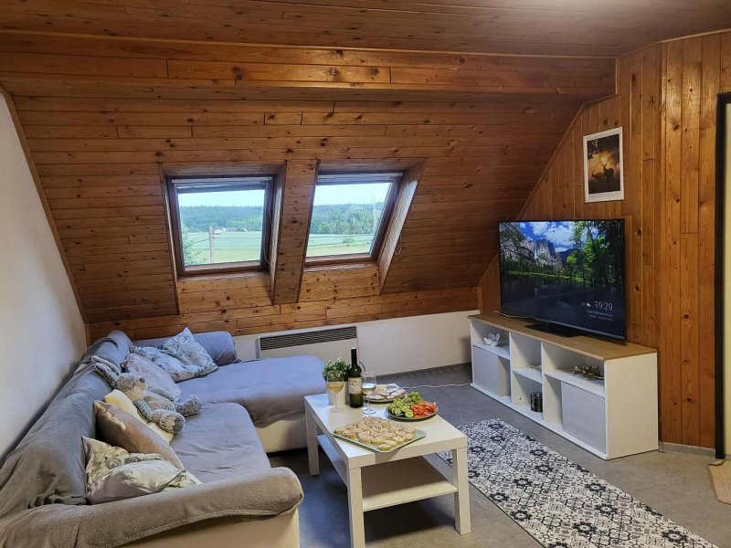 Nově zrekonstruované podkroví pojme až 14 dospělých osob + rozkládací gauč.