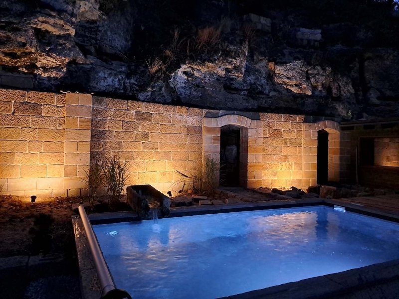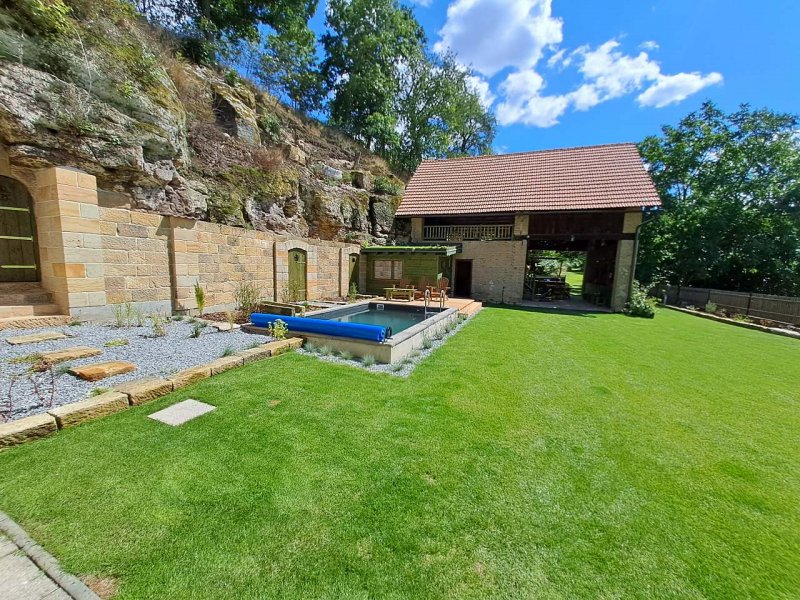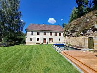 Krásné místo u skal pro romantiky i sportovce... Chalupa po kompletní nákladné rekonstrukci (2021 - 23) se nachází v srdci CHKO Kokořínsko - Máchův kraj konkrétně v lokalitě zvané Roverské skály (kultovní místo českých trempů). Chlupa je na polosamotě na kraji lesa cca 150m od obce Zátyní. V přímém sousedství chalupy jsou turistické i cyklo trasy vedoucí krásnou krajinou Kokořínska. Na pozemku se nacházejí dva objekty - chalupa a stodola, které svojí kratší stranou přiléhají na 15m vysokou pískovcovou skálu, ve které jsou vytesány jeskyně, které slouží jako vinný sklep. Na pozemku se dále nachází zapuštěný bazén 5x3x1,5m a Finská venkovní sauna (2 hodiny saunování v ceně pronajmu, každá další hodina za 750,- Kč). U chalupy pohodlně zaparkuje až 10 aut. Na pozemku nechybí ani klasické ohniště s grilem pro romantické večerní posezení u kytary...