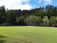 Praktickou stránku zajišťuje dostatek místa pro parkování dvou vozů přímo ve dvoře. Chalupa sousedí s domem pronajímatele, který u objektu chová slepičky, což jen dokresluje autentický ráz venkovského bydlení.