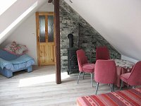 Chalupa v obci Nová Paka: 5 ložnic, celkem pro 1 až 12 osob. Orientační cena (chalupa za týden): léto 40.000kč, zima 30.000kč.