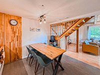 Náš útulný horský domov Třicítka poskytuje komfortní ubytování pro až 7 osob, včetně vašich domácích mazlíčků. Tato prostorná nabízí tři příjemné ložnice a obývací pokoj s kuchyní, která je kompletně vybavena. V přízemí najdete samostatnou toaletu, zatímco v prvním patře se nachází plně zařízená koupelna s vanou, toaletou a pračkou.