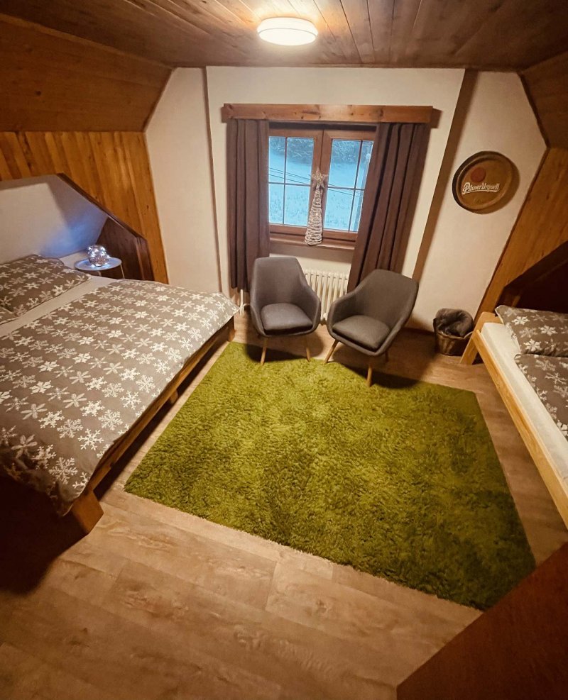 Bydlení v horské chatě obklopené lesy a loukami s potokem přímo za domem, kde můžete posedět, grilovat a jen poslouchat šumění vody a zpěv ptáků. Bezbariérová nově zrekonstruovaná chata Alaska se nachází na jižní svah pod Klínovcem.