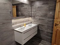 Chata Anička se nachází v malé vesnici Štědrákova Lhota. Je to nově postavená dřevěná chata cca 30m od lesa. Je zařízena pro ubytování 15 osob. Vstup je na velikou krytou terasu která je vybavena venkovním posezením s možností celkového uzavření. Z terasy je bezbarierový vstup do chodby uvnitř chaty. Odtud je možnost projít do veliké společenské místnosti s rozkládacím gaučem a televizorem. Na spol. místnost navazuje plně vybavená prostorná kuchyně. Z chodby naproti spol. místnost je vstup do herny která je taktéž vybavena rozkládacím gaučem, stolem a různými hračkami pro vaše ratolesti. Tato místnost má jako jediná na podlaze koberec, jinak je všude podlaha vinylová částečně s podlahovým vytápěním. V přízemí je také soc. zařízení sprcha+ WC a samostatné WC. Z prostorné chodby vyjdete dřevěných schodech do 1 poschodí kde se nachází pět ložnic(2x4lůžka, 1x3lůžka, 2x2lůžka) a sociální zařízení, sprcha+WC a samostatné WC. Vytápění je centrální kotlem na tuhá paliva. Chata je vybavena venkovním bazénem 5 x 3m. Velmi se těšíme na vaši návštěvu.