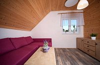 Chata v obci Kubova Huť: 4 ložnice, celkem pro 2 až 18 osob. Orientační cena (chata za noc): léto 10.000kč, zima 9.000kč.