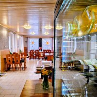 Nová společenská místnost s kapacitou 42 míst, skutečná perla naší chaty. Prostorný, nově zrekonstruovaný sál s velkoformátovými okny vám dopřeje panoramatický výhled do krušnohorské přírody. Ideální prostor pro jógu, workshopy nebo rodinné posezení u sklenky vína, soukromé oslavy, svatby nebo uzavřená setkání.