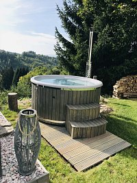 Nově jsme pro vás připravily na terase pod chatou vyhřívaný bazén se slanou vodou a posezením pod pergolou, kde je kouzelný výhled do horského údolí a nedalekých lesů. Možnost využítí vířivého sudu u vzrostlých smrků, hydromasážní vířivky a infrasauny. A pro chatu Bedunu vyrobený prostorný gril pro vaše kulinářské umění.