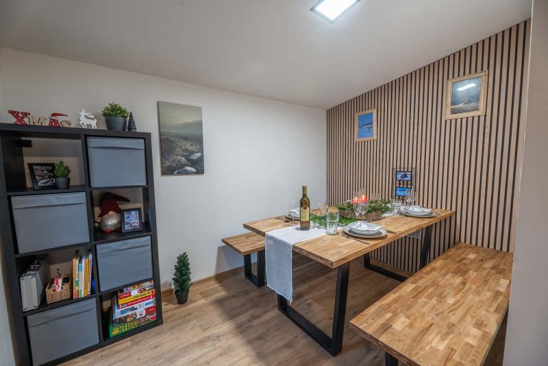 Apartmán v obci Modrá: 3 ložnice, celkem pro 1 až 7 osob. Orientační cena (za osobu za noc): celoročně 600kč.