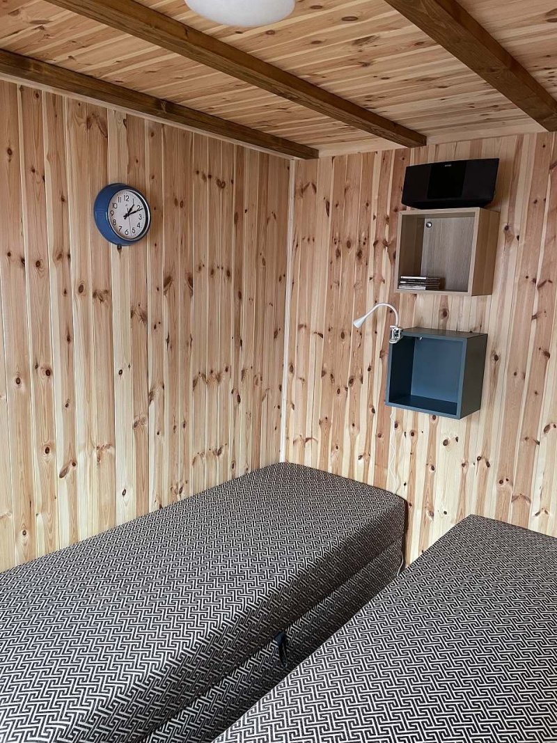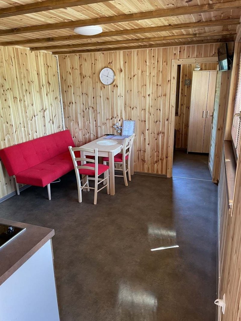 Nová chata 80m od písečné pláže. Ručník přes rameno a kolem potůčku jste u vody za dvě minuty. Pozvolný vstup do vody ocení jak starší ročníky tak rodiče s dětmi. Moderně zařízený nový domek je situovaný ve slepé uličce kam jezdí pouze místní obyvatelé (dvě chaty) Klidné místo ideálně pro čtyřčlennou rodinu s malým zvířecím kamarádem.