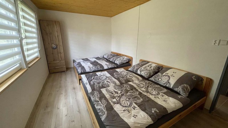 Chata v obci Olešnice: 3 ložnice, celkem pro 1 až 8 osob. Orientační cena (chata za týden): léto 15.000kč, zima 11.000kč.