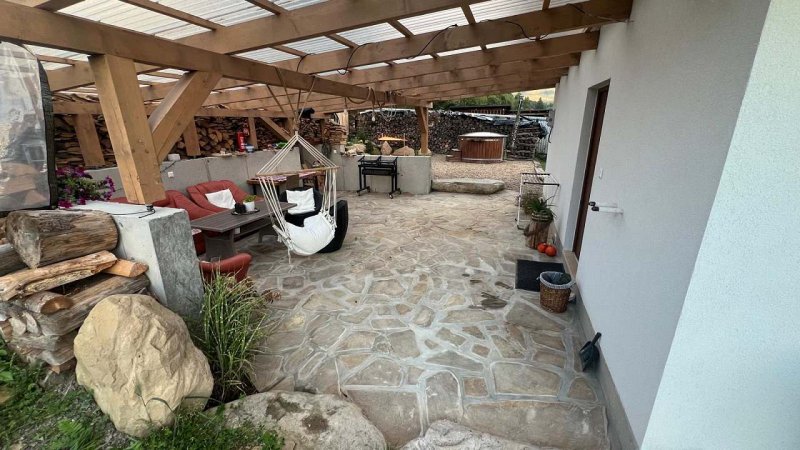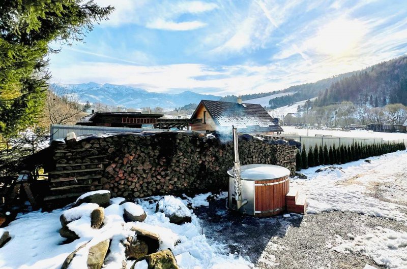 Možnosť vychutnávania výhľadu na terase, grilovanie pod prístreškom, kúpania sa vo vonkajšej kadi.