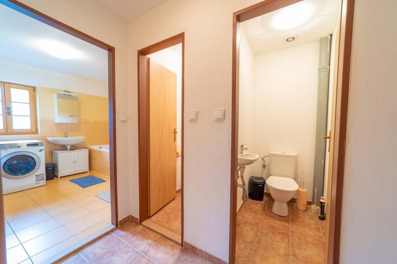 K dispozici hostům slouží neplacené soukromé parkoviště, 14 standardních lůžek rozdělených do 5 ložnic s možností dalších 4 přistýlek (na vyžádání také dětská postýlka), 3 koupelny, 4 WC, jídelní část a kuchyň s kompletním vybavením včetně kávovaru, myčky, pračka, sušička, bezplatná Wi - Fi, TV s plochou obrazovkou, ložní prádlo, ručníky, toaletní potřeby, fén a pantofle.